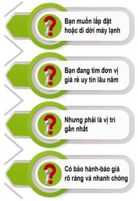 Bạn muốn lắp đặt hoặc di dời máy lạnh nhưng cần tìm một đơn vị giá rẻ uy tín lâu năm gần vị trí gần nhất, có bảo hành-báo giá rõ ràng và nhanh chóng